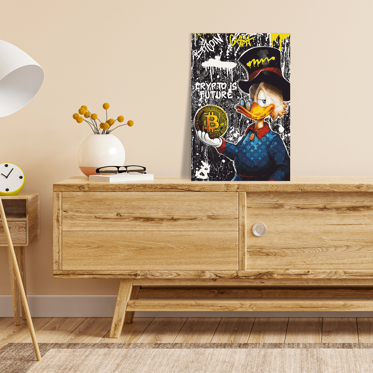 Mit der modernen, matt wirkenden Leinwandstruktur erhält dein Bild eine wertige Galerie-Optik. Hänge Malen nach Zahlen - DAGOBERT BITCOIN DUCK No. 1 - LIMITED EDITION gut sichtbar auf – als farblichen Akzent im Wohnzimmer, als persönliches Statement im Arbeitszimmer oder als Geschenk, das lange Freude macht.