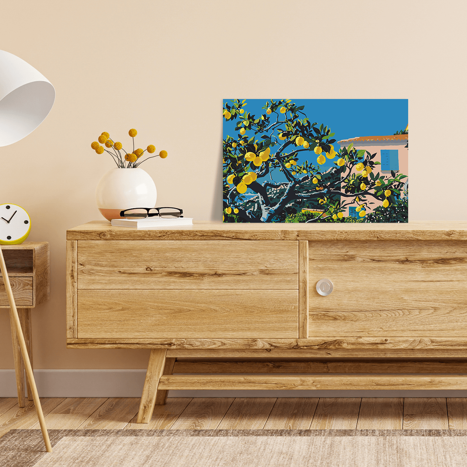 Mit der modernen, matt wirkenden Leinwandstruktur erhält dein Bild eine wertige Galerie-Optik. Hänge Malen nach Zahlen - Citronnier en Côte d'Azur gut sichtbar auf – als farblichen Akzent im Wohnzimmer, als persönliches Statement im Arbeitszimmer oder als Geschenk, das lange Freude macht.