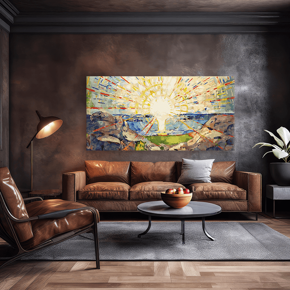 Mit der modernen, matt wirkenden Leinwandstruktur erhält dein Bild eine wertige Galerie-Optik. Hänge Malen nach Zahlen - Edvard Munch - Die Sonne 1911 gut sichtbar auf – als farblichen Akzent im Wohnzimmer, als persönliches Statement im Arbeitszimmer oder als Geschenk, das lange Freude macht.