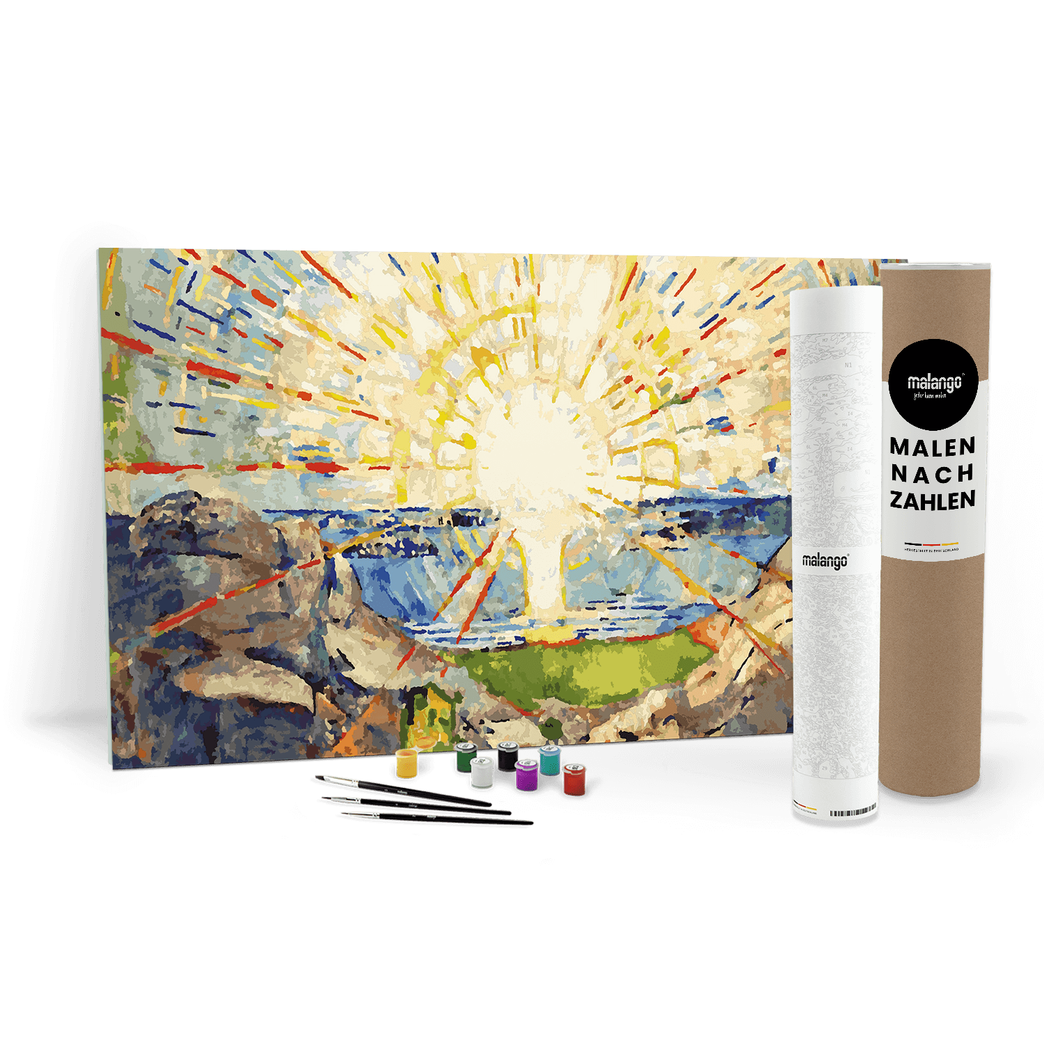 Du möchtest abschalten, zur Ruhe kommen und gleichzeitig etwas Sichtbares schaffen? Mit dem Malen nach Zahlen Set Malen nach Zahlen - Edvard Munch - Die Sonne 1911 von malango tauchst du in eine farbenfrohe Welt ein – alleine als Me-Time, gemeinsam mit Familie und Freunden oder als besonderes Geschenk. Strich für Strich wächst dein Kunstwerk, die Gedanken werden ruhig, und am Ende hältst du ein Bild in den Händen, auf das du stolz sein kannst.