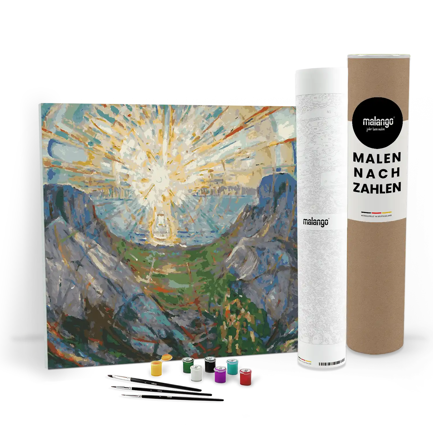 Jedes Set wird nachhaltig mit Ökostrom und vollständig mit Liebe in Deutschland (Brandenburg) produziert. Es enthält alles, was du zum Malen brauchst:
