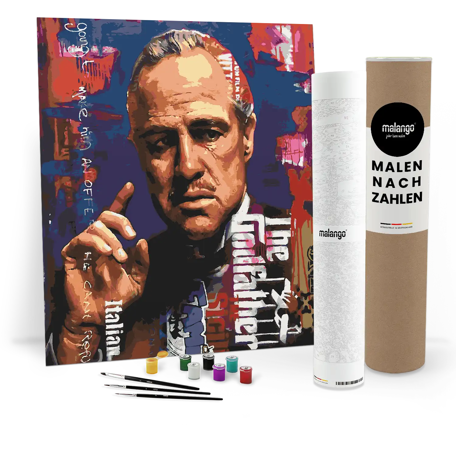 Das Malset Malen nach Zahlen - El Padrino - Zinsky von Zinsky entsteht nachhaltig in Deutschland und steht für höchste Qualität, Sorgfalt und Verantwortung. Wir setzen auf hochwertige Materialien, kurze Lieferwege und eine Fertigung mit viel Liebe zum Detail.