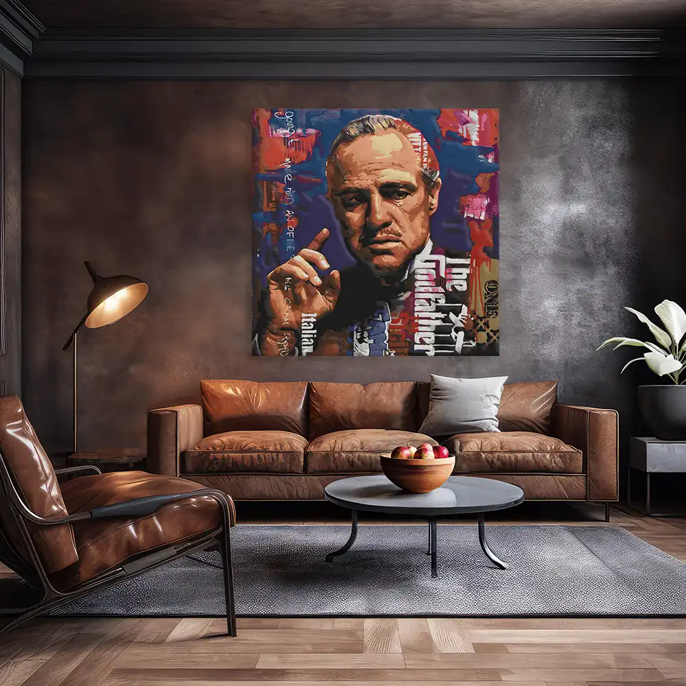 "El Padrino" eignet sich hervorragend für moderne Wohnräume, in denen Kunst und Design im Vordergrund stehen. Ob im Wohnzimmer, Büro oder einem kreativen Arbeitsbereich – dieses Kunstwerk verleiht jedem Raum eine besondere Note.