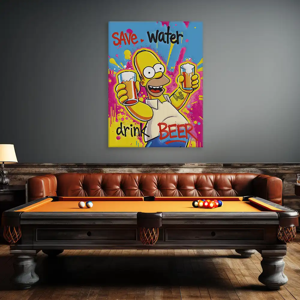 Mit der modernen, matt wirkenden Leinwandstruktur erhält dein Bild eine wertige Galerie-Optik. Hänge Malen nach Zahlen - Homer - Save Water Drink Beer gut sichtbar auf – als farblichen Akzent im Wohnzimmer, als persönliches Statement im Arbeitszimmer oder als Geschenk, das lange Freude macht.