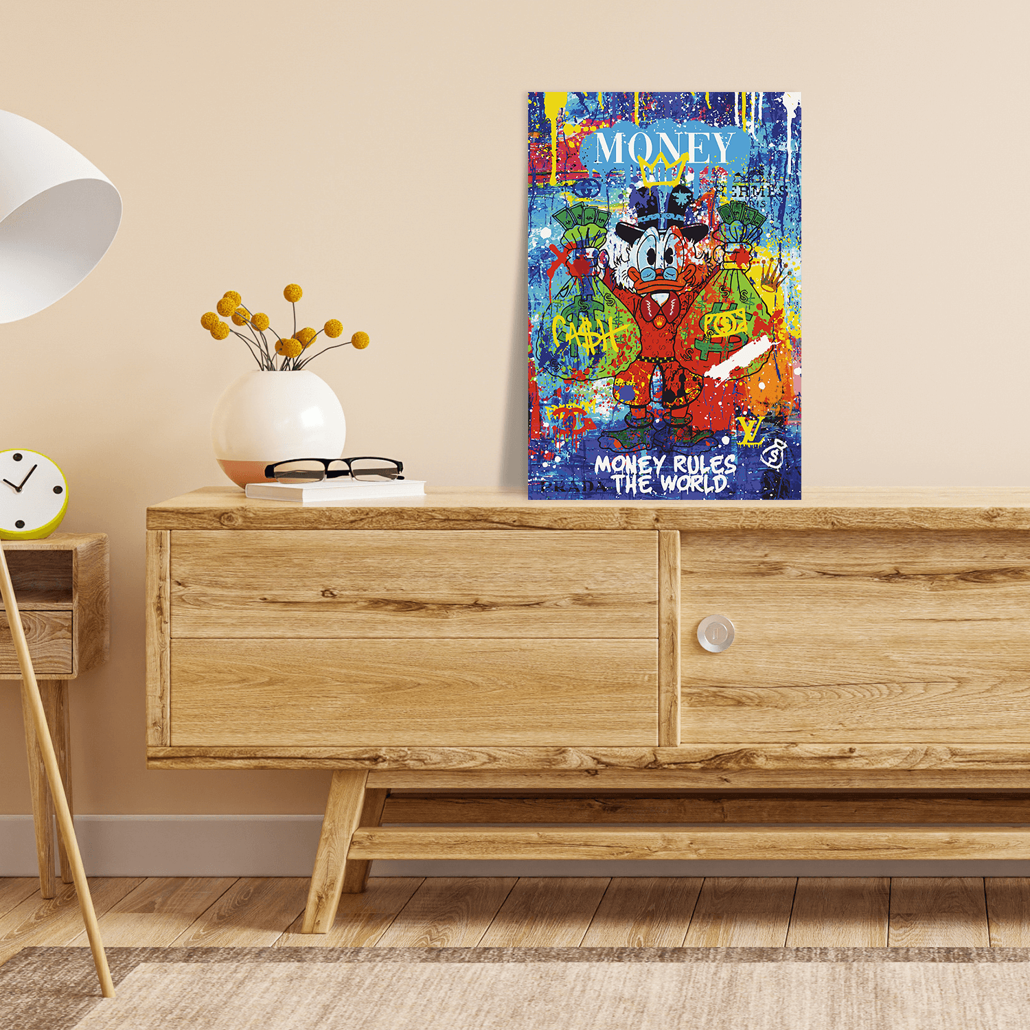Mit der modernen, matt wirkenden Leinwandstruktur erhält dein Bild eine wertige Galerie-Optik. Hänge Malen nach Zahlen - DAGOBERT MONEY RULES THE WORLD No. 1 - LIMITED EDITION gut sichtbar auf – als farblichen Akzent im Wohnzimmer, als persönliches Statement im Arbeitszimmer oder als Geschenk, das lange Freude macht.